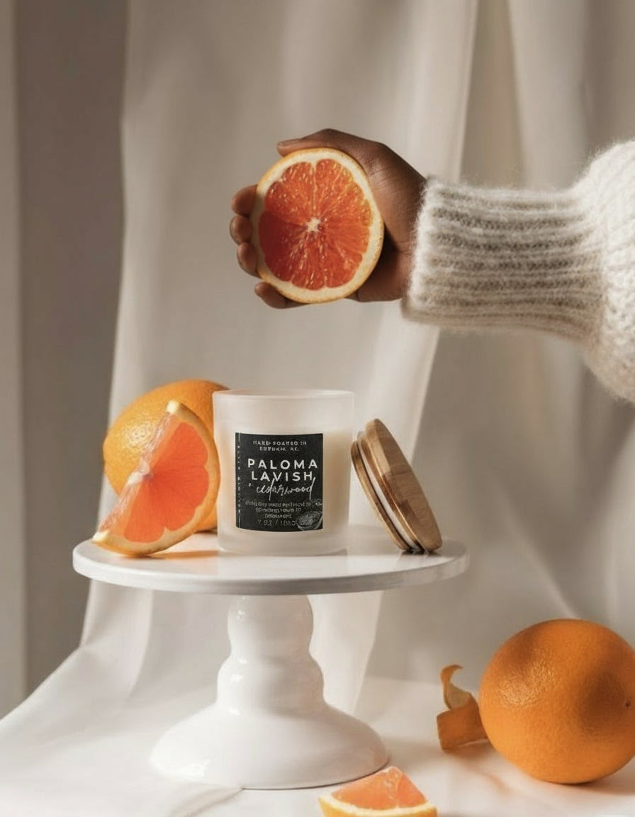 Bright and grounding all at once, Paloma Lavish + Cedarwood blends vibrant citrus top notes with the earthy depth of cedarwood. It’s refreshing, modern, and effortlessly elegant; perfect for brightening your space with a touch of sophistication.
